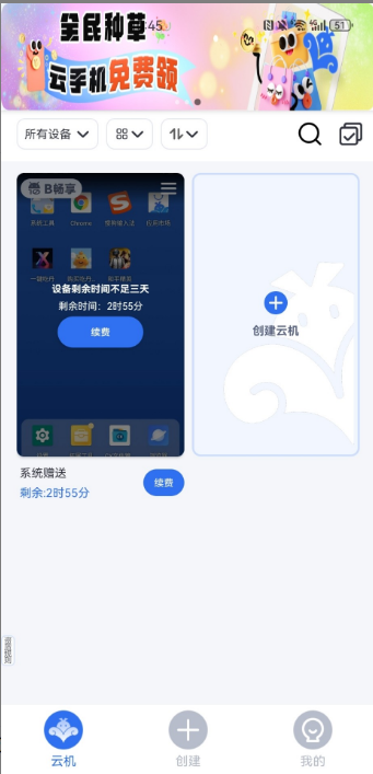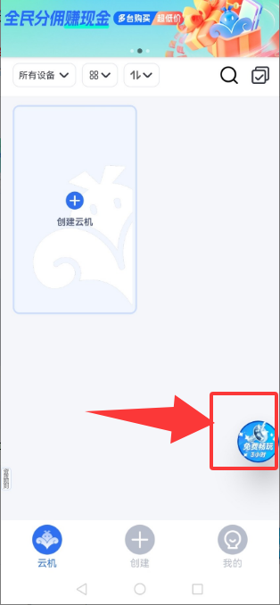 1.注册完成后,打开你的云手机,注册就送3小时体验