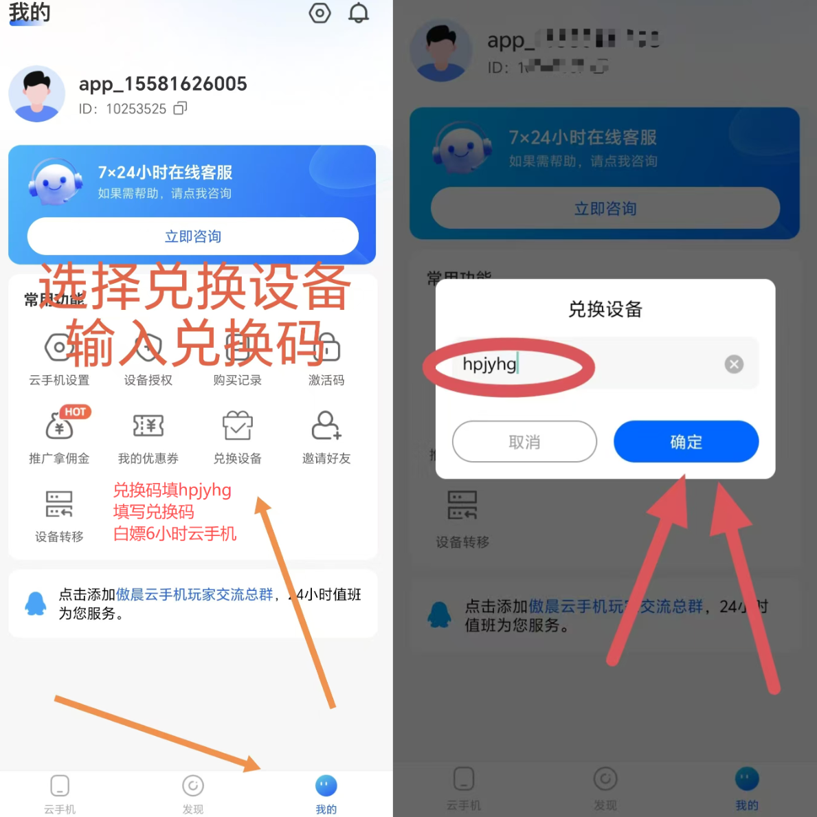 注册完成后输入兑换码hpjyhg免费体验6小时云机内置了一键吃丹脚本,无需再下载脚本